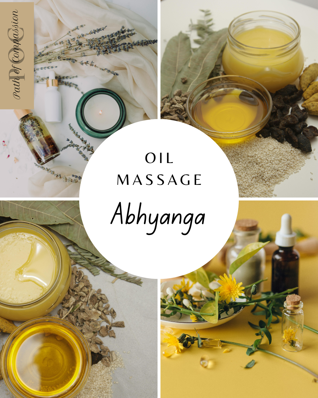 Abhyanga (self-massage) is a traditional Ayurvedic treatment that involves massaging the body with warm oils before showering to nourish the skin and calm the nervous system. It can be done regularly as part of a self-care routine. Especially during months when the air and skin feels drier. Sesame oil is typically suggested, but if it feels too heating, coconut oil can be used. Abhyanga promotes: Relaxation and stress reduction, improved circulation, nourished and moisturized skin, joint pain relief, flexibility, improved sleep.